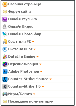 <img src="http://diz-a.ru/menu/ucoz.png" align="absmiddle" width="16"> Система uCoz <img src="http://diz-a.ru/menu/arrow_down.png" alt="" align="absmiddle" style="margin:0px;"></a>